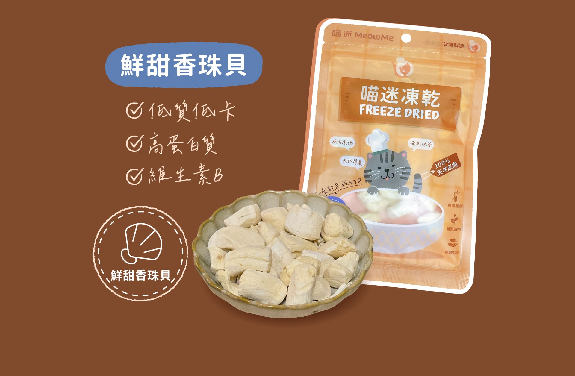 💡 珍稀珠貝:富含鈣質與微量元素,幫助骨骼發育,維持皮毛亮澤!