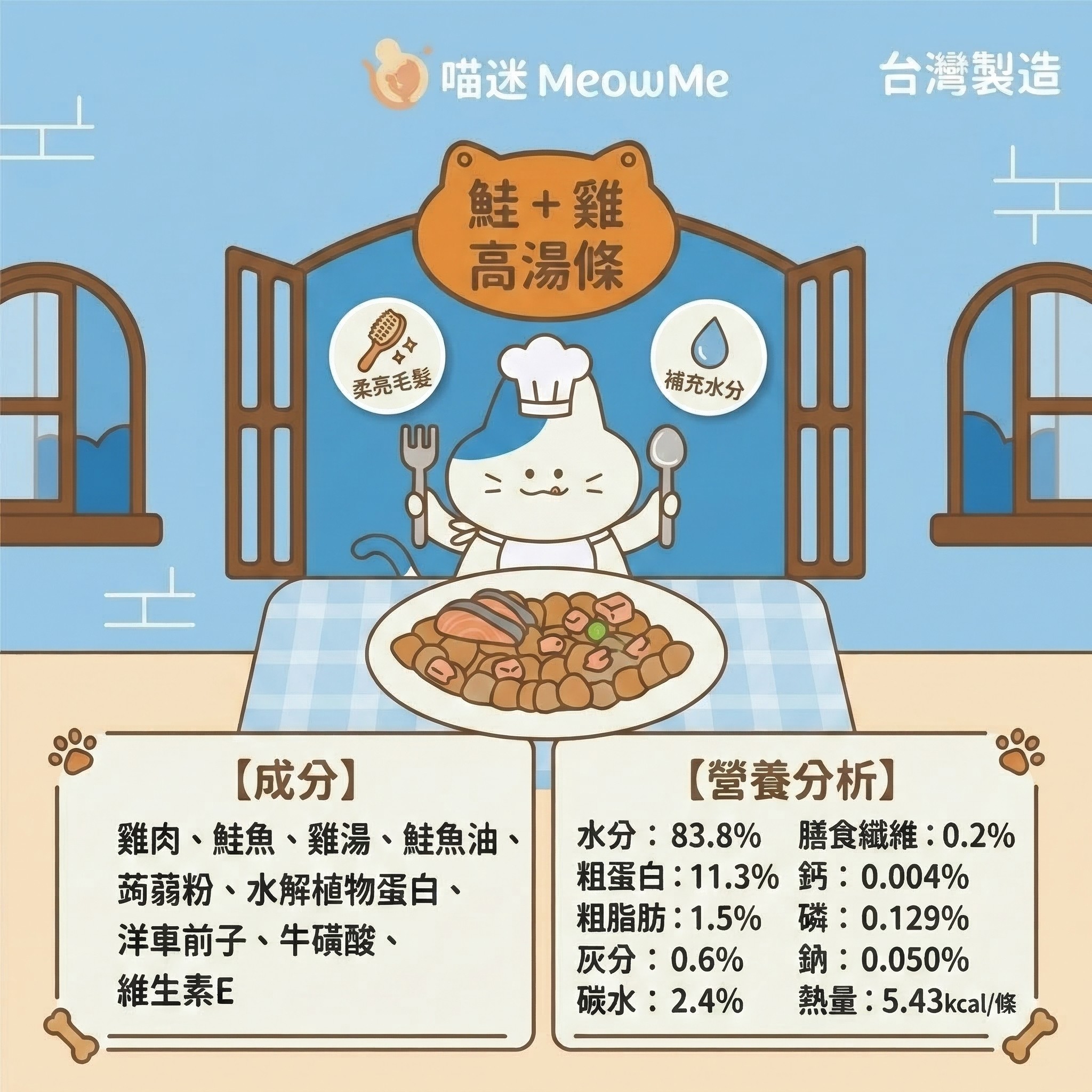 鮭魚的自然鮮味搭配雞肉,整體香氣清爽、不易膩口,質地偏濃湯感,特別好舔。 即使是不常吃魚的貓,也能輕鬆接受。 ✅ 適合: